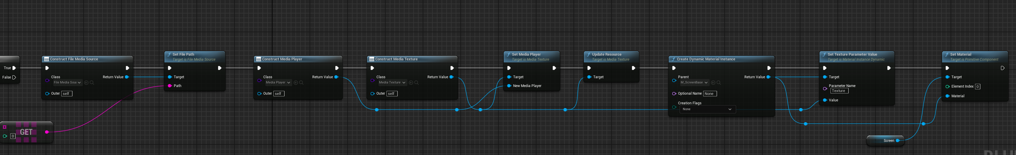 首先看一下动态创建媒体资产,并播放的蓝图: